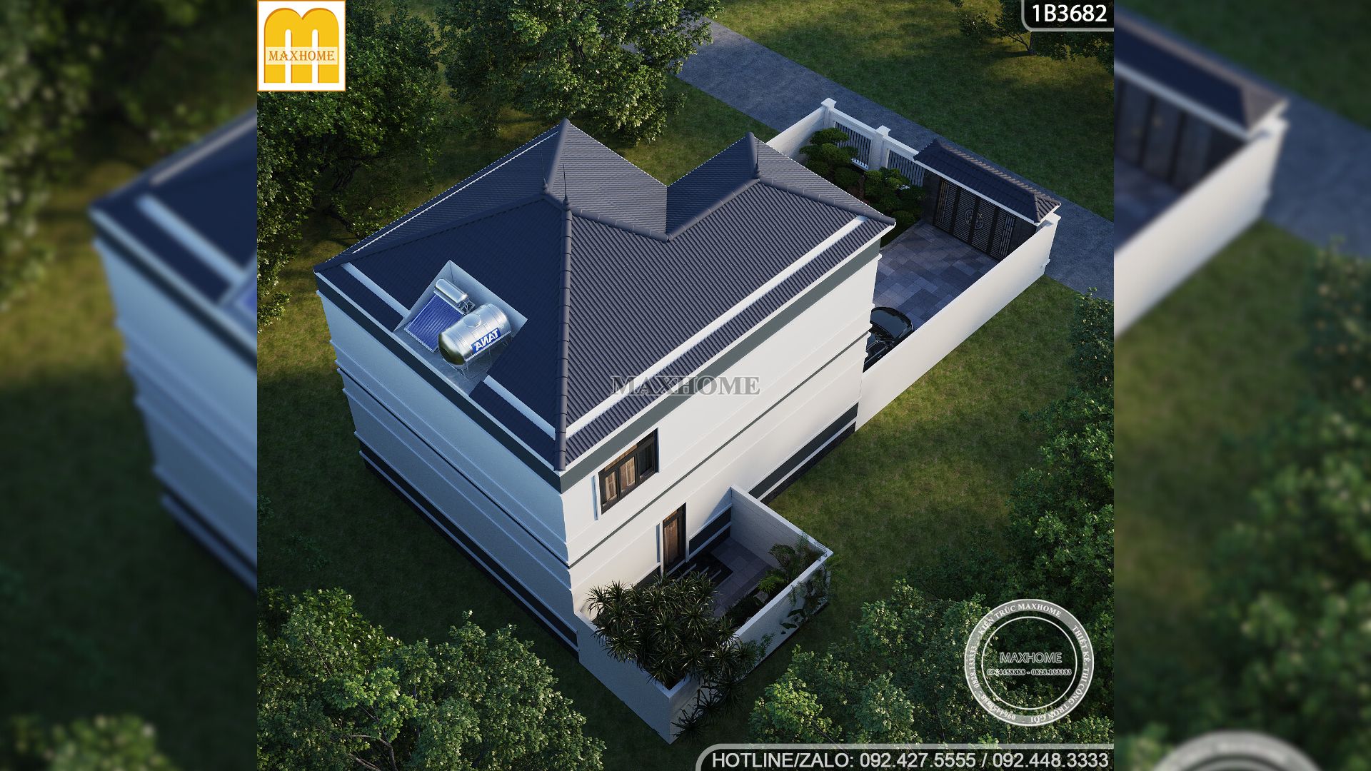 Điểm chạm đầu tiên khiến bất cứ ai khi đi ngang qua cũng phải ngoái nhìn chính là sự phối hợp màu sắc cực kỳ sang, xịn, mịn trên nền diện mạo ngoại thất. Maxhome đã khéo léo sử dụng tông màu trắng sứ làm chủ đạo kết hợp hài hòa với những mảng nhấn màu ghi xám hiện đại tại các vị trí phân tầng và chân tường. Cách phối màu này không chỉ giúp mẫu nhà 2 tầng chữ L trở nên nổi bật, bền màu theo thời gian mà còn tạo cảm giác sạch sẽ và mới mẻ.