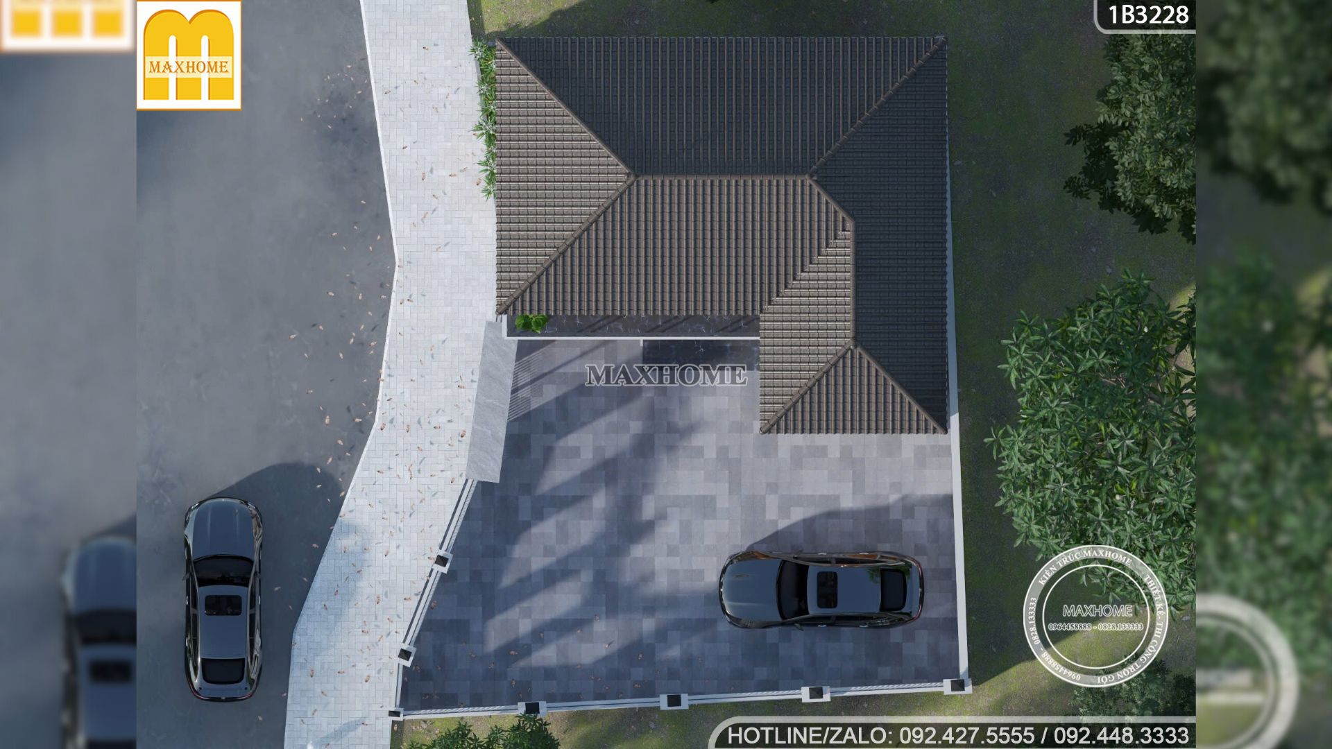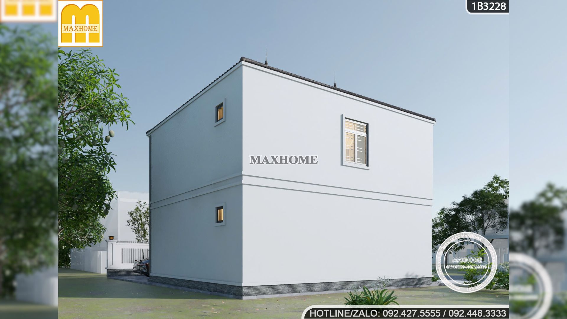 Căn nhà 2 tầng chữ L sở hữu mặt tiền rộng tới 10,4m, một lợi thế lớn để kiến trúc sư Maxhome khai thác hình khối. Phần khối nhà được xử lý nhô ra 2,9m hình thành bố cục nhà chữ L rõ nét giúp công trình vừa có chiều sâu vừa tạo được khoảng đệm thoáng đãng phía trước. Với cách tổ chức này, bản vẽ nhà chữ L không chỉ đáp ứng yếu tố thẩm mỹ mà còn rất chuẩn về phong thuỷ, giúp dòng khí lưu thông hài hoà và tránh cảm giác bí bách thường thấy ở những ngôi nhà ống.