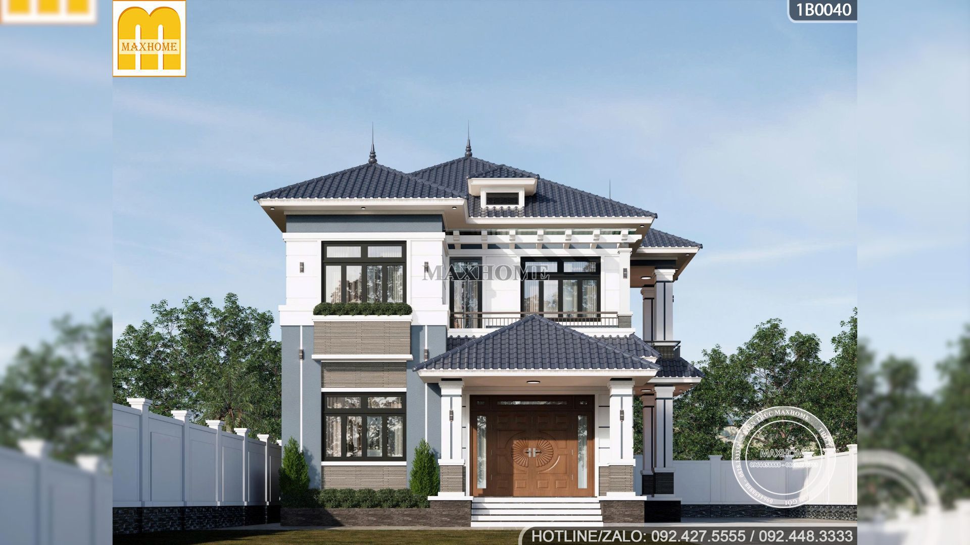 Để giữ dáng vẻ bề thế cho ngôi nhà, Maxhome bố trí các cột trụ cao ráo ở cả sảnh chính, sảnh phụ và khu vực ban công. Hệ cột không chỉ giúp ngôi nhà có sự chắc chắn mà còn khiến tổng thể thêm sang. Nhìn từ xa, hình khối công trình rõ ràng, mạnh mẽ và cân đối giúp mặt tiền luôn nổi bật mà vẫn giữ được sự hài hòa với tổng thể màu sắc và vật liệu.