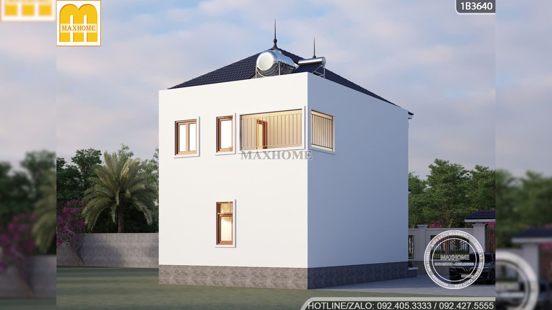 Để tối ưu hóa chi phí mà vẫn đảm bảo tính thẩm mỹ cao nhất, Maxhome đã khéo léo sử dụng sơn trắng cho các mặt tường còn lại. Giải pháp này giúp dồn toàn bộ sự chú ý vào mặt tiền của công trình, nơi các chi tiết trang trí được chăm chút tỉ mỉ nhất.