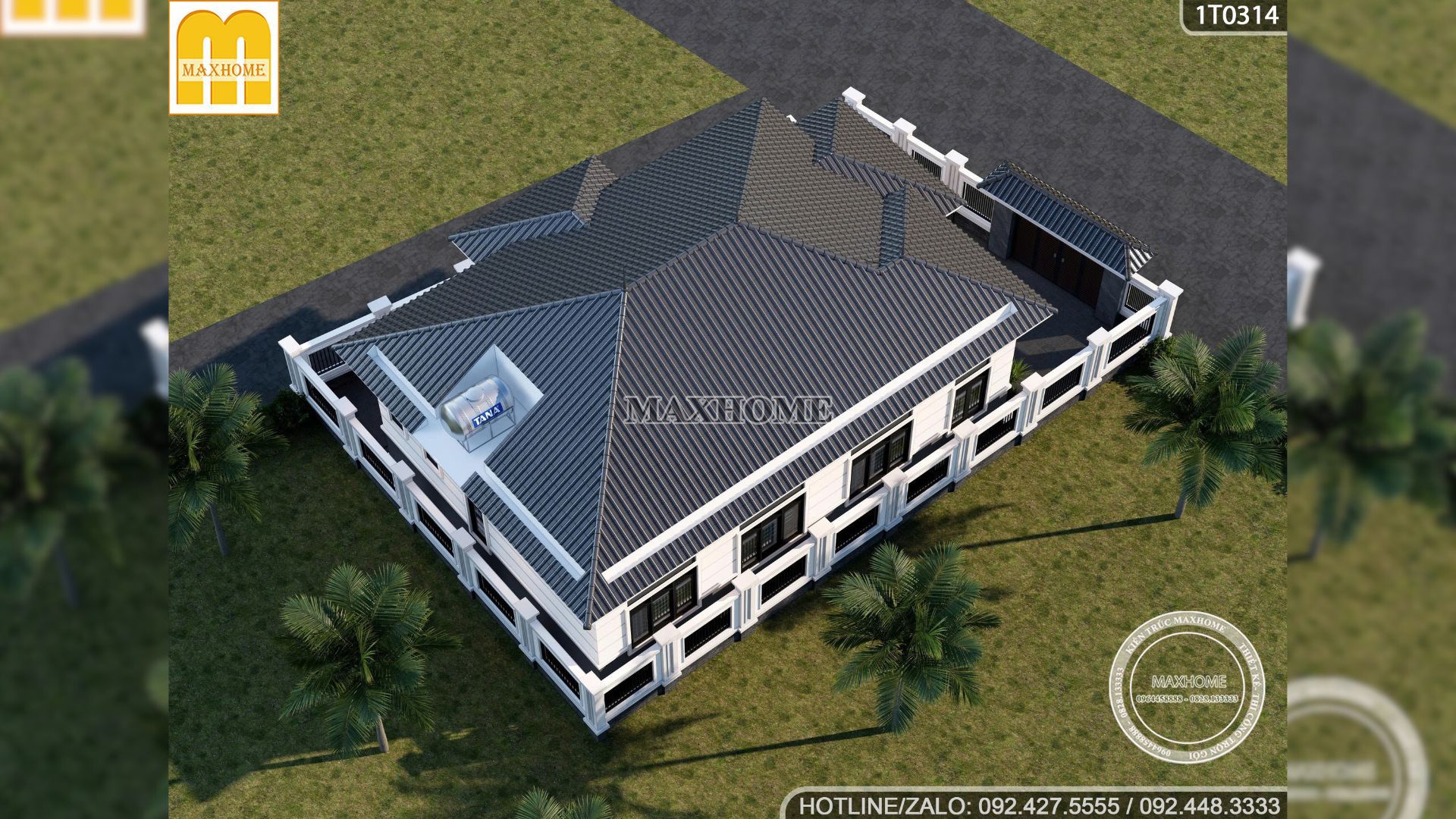 Nhìn tổng thể từ trên cao, mẫu nhà cấp 4 mái Nhật của anh Chiến ở Hà Tĩnh là minh chứng cho phong cách thiết kế tối giản nhưng tinh tế của Maxhome. Từng chi tiết từ sơn giả đá, hệ bậc thềm, cửa chính gỗ Lim pano kính cho đến mái Nhật chắc chắn đều được tính toán kỹ lưỡng để mang đến sự hài hòa giữa thẩm mỹ và công năng. Đây chắc chắn là một trong những mẫu nhà cấp 4 mặt tiền 11m đáng tham khảo nhất hiện nay cho những ai yêu thích không gian sống tiện nghi, bền đẹp và đậm dấu ấn cá nhân.