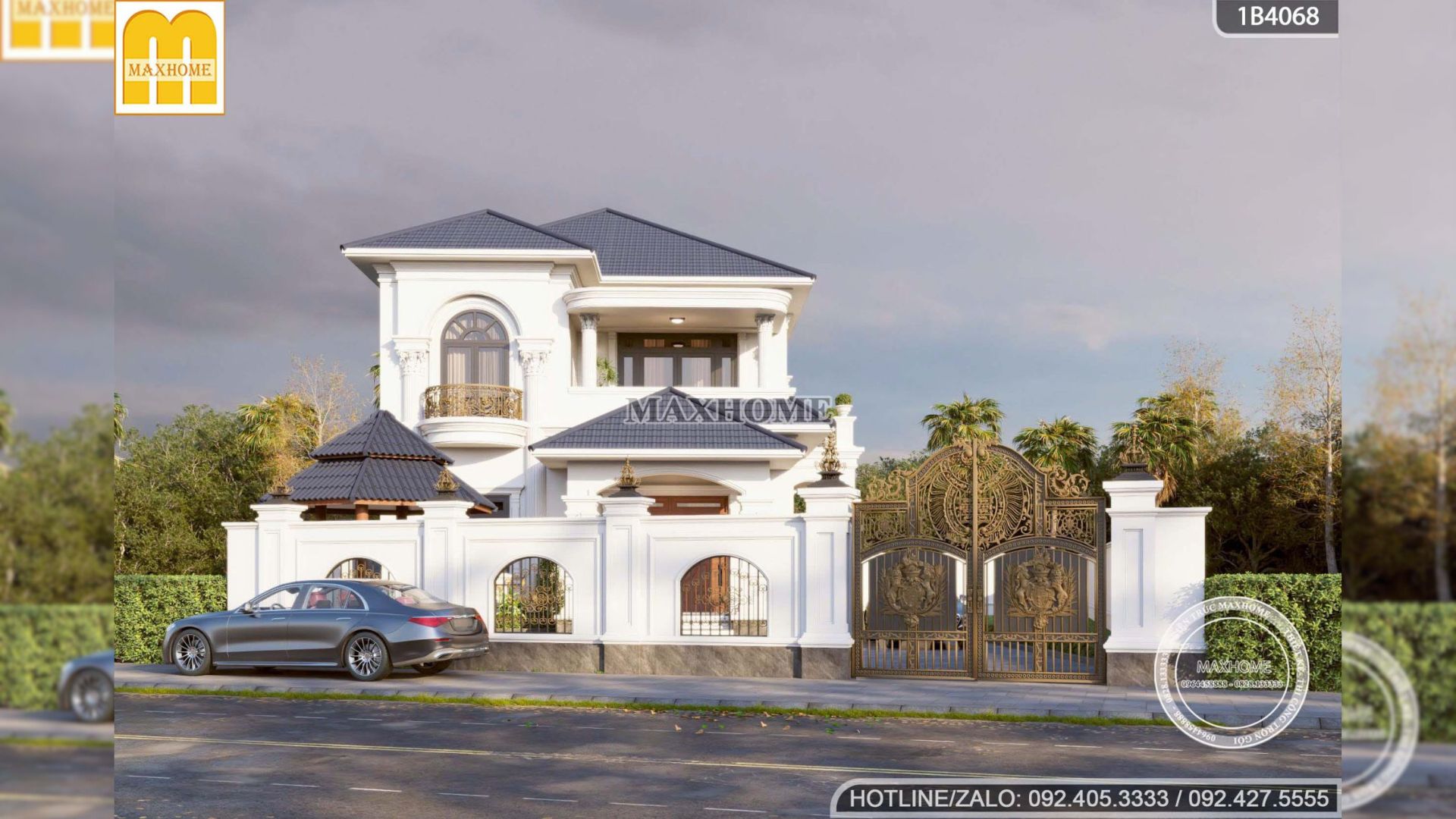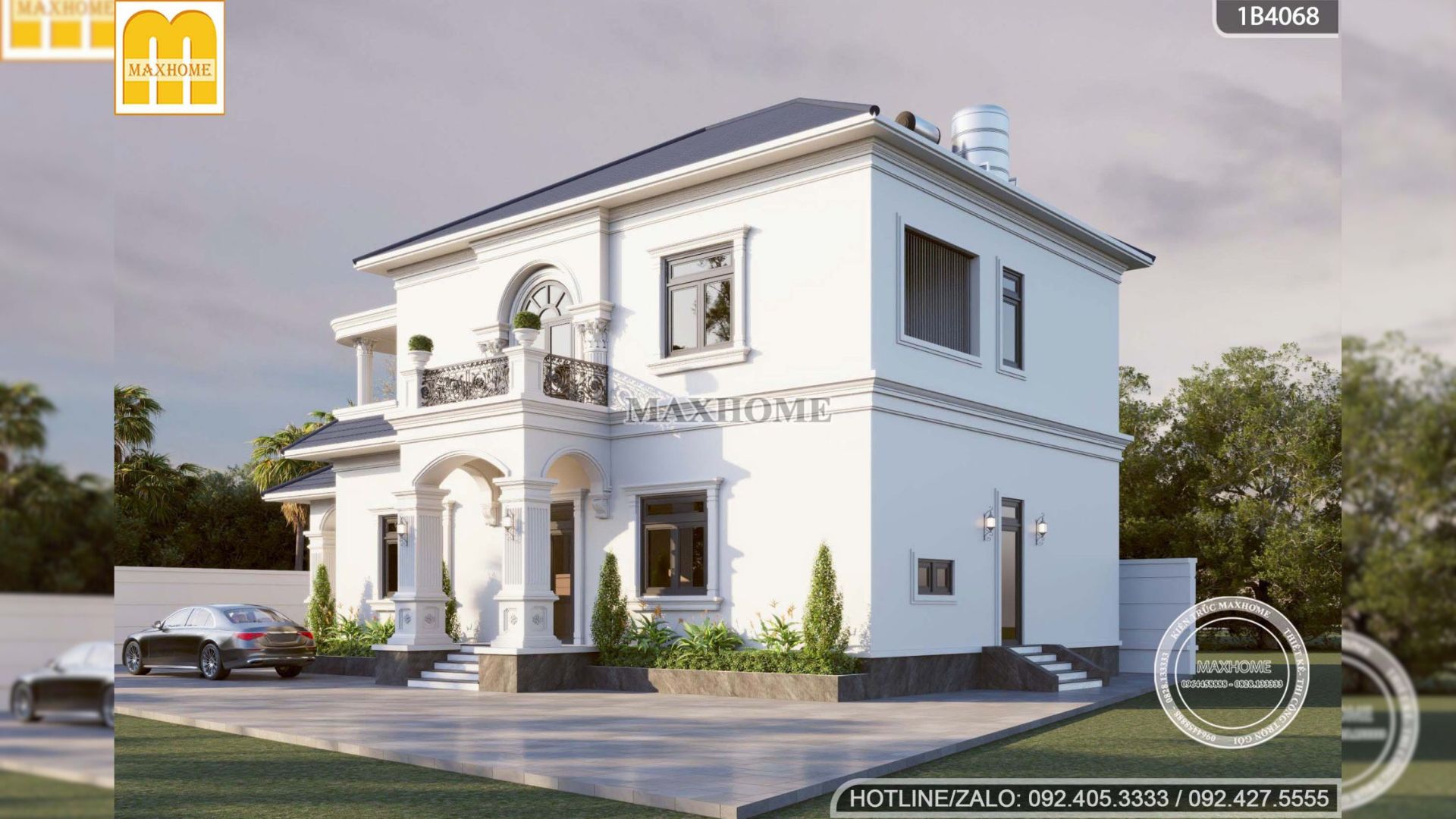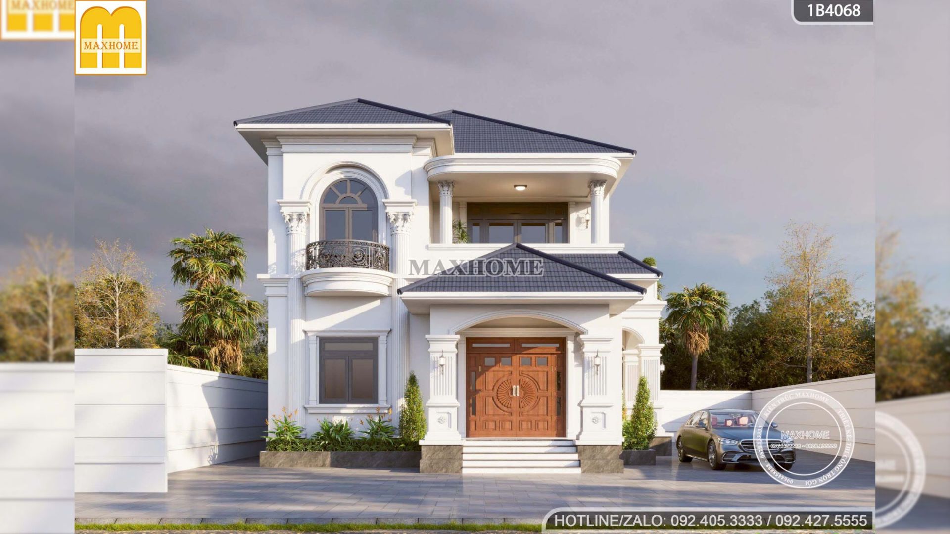 Công trình lựa chọn gam màu trắng làm tông màu chủ đạo, đặc trưng cho phong cách tân cổ điển, giúp làm nổi bật sự tinh tế của các đường phào chỉ cùng những chi tiết trang trí mềm mại, cân đối. Sắc trắng mang đến cảm giác sang trọng, thanh lịch và nhẹ nhàng, đồng thời tôn vinh rõ nét hình khối kiến trúc, tạo chiều sâu cho mặt tiền. Bên cạnh giá trị thẩm mỹ, gam màu này còn giúp công trình luôn giữ được vẻ đẹp trang nhã, dễ phối hợp vật liệu và bền vững với thời gian.