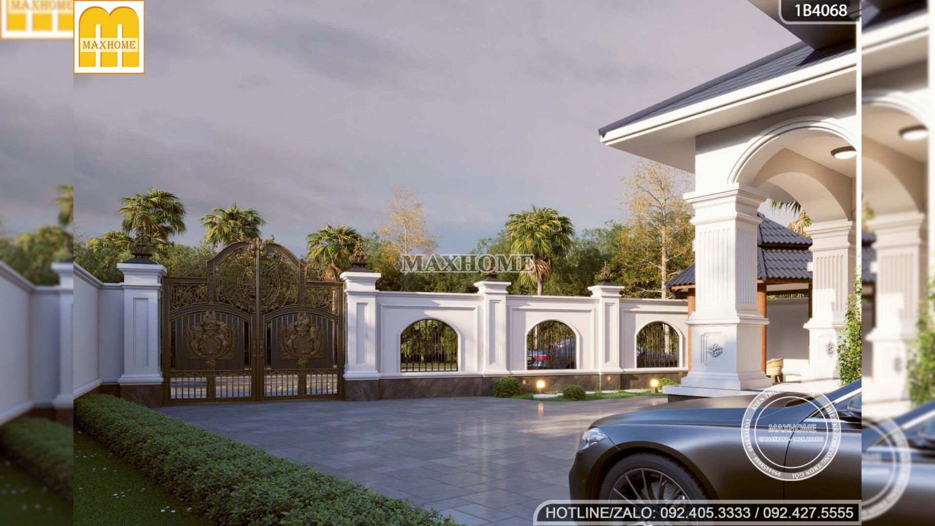 Hệ thống cổng được thiết kế theo phong cách tân cổ điển sang trọng, sử dụng chất liệu sắt mỹ thuật cao cấp với các hoa văn, họa tiết uốn lượn tinh xảo và sống động. Không chỉ tạo điểm nhấn thẩm mỹ ấn tượng cho mặt tiền, phần cổng còn thể hiện sự bề thế, đẳng cấp của công trình, đồng thời đảm bảo độ chắc chắn, an toàn và độ bền cao theo thời gian.