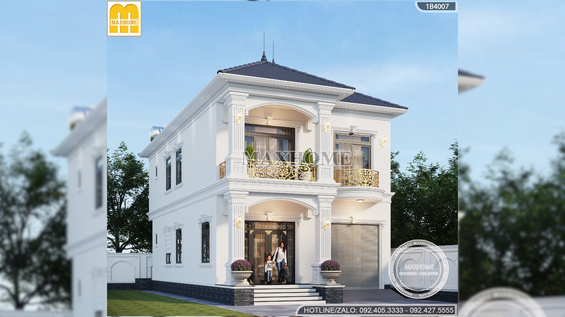 Mẫu nhà 2 tầng mái Nhật tân cổ điển nổi bật với vẻ đẹp tân cổ điển sang trọng, hình khối cân đối và các đường nét được xử lý tinh tế, tạo nên cảm giác vững chắc và bề thế cho toàn bộ công trình. Từng mảng tường, hệ cột và chi tiết trang trí đều được thiết kế có chủ đích, đảm bảo sự hài hòa giữa tính thẩm mỹ và độ bền theo thời gian. Sự kết hợp giữa phong cách tân cổ điển và mái Nhật giúp ngôi nhà thêm phần trẻ trung, thoáng rộng và mang lại nét hiện đại nhưng vẫn giữ được chất sang trọng đặc trưng.