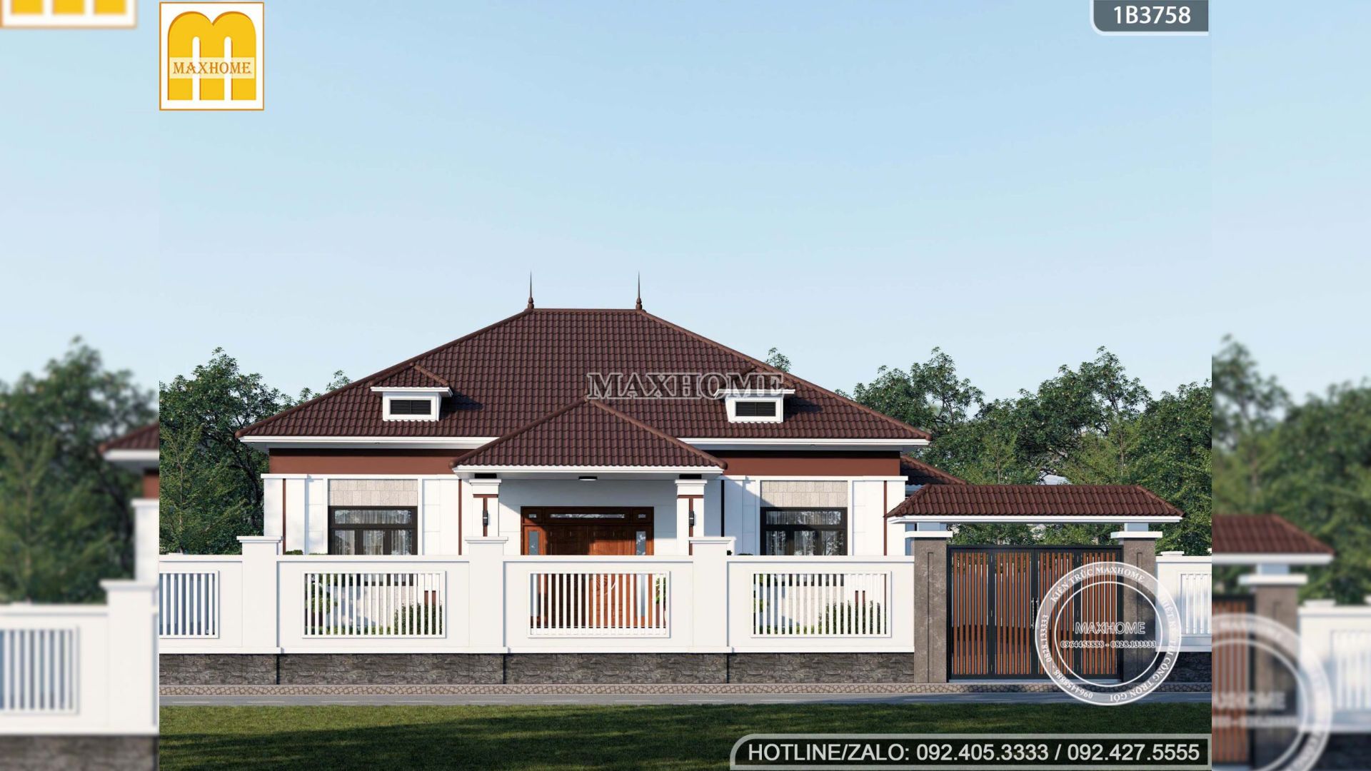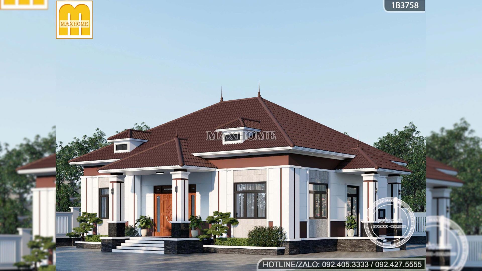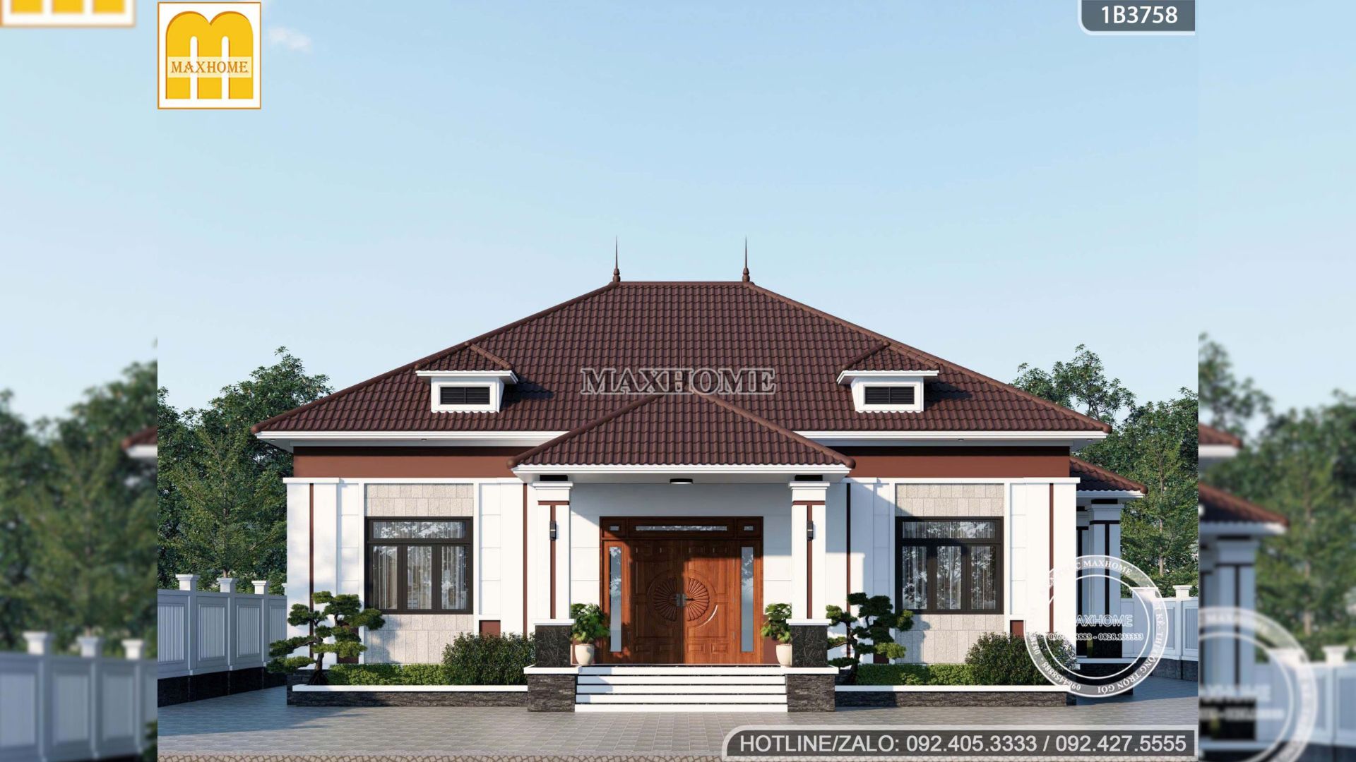 Ngoại thất nhà cấp 4 mái Nhật ngói nâu đỏ sang trọng