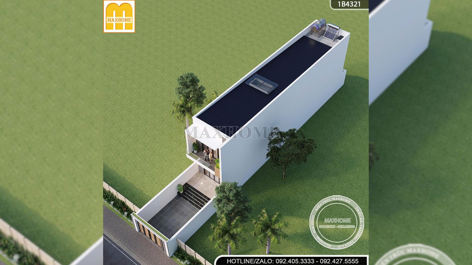 Kiến trúc sư còn khéo léo bố trí giếng trời ngay giữa mái, góp phần lấy sáng tự nhiên, tăng khả năng thông gió, mang lại không gian sống thoáng đãng và dễ chịu cho toàn bộ ngôi nhà. Bên cạnh đó, hệ thống téc nước và thái dương năng được sắp xếp gọn gàng, khoa học trên mái, vừa tối ưu công năng sử dụng, vừa đảm bảo tính thẩm mỹ, thể hiện rõ tư duy thiết kế thực tế và chỉn chu trong từng chi tiết của Maxhome.
