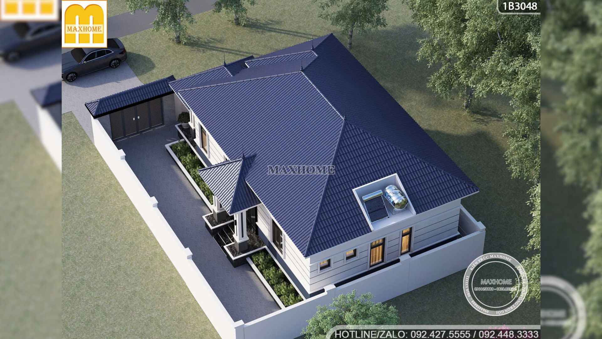 Ngôi nhà cấp 4 3 phòng ngủ này mang phong cách hiện đại và nổi bật với hệ mái Nhật màu xanh lam thanh thoát. Đây là kiểu mái đang được nhiều gia đình Việt yêu thích nhờ khả năng chống nóng, thoát nước tốt và bền bỉ với thời gian. Mái ngói nhà anh Hưng được thi công bằng ngói Maxhome cao cấp kết hợp hệ vì kèo siêu nhẹ, đảm bảo độ chắc chắn và tuổi thọ lên đến hơn 20 năm.