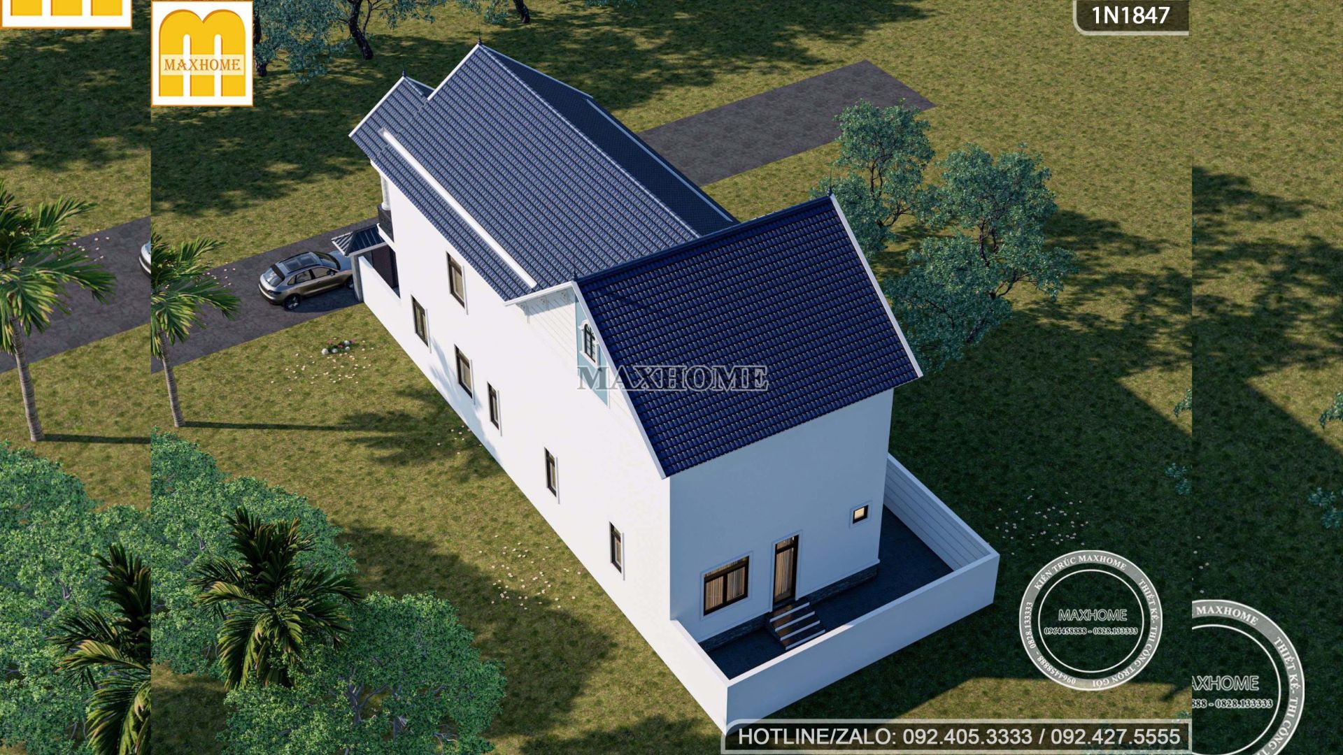 Công trình dưới đây được đánh giá là một mẫu nhà mái Thái 1 tầng 1 lửng khá đặc biệt, nổi bật nhờ sự kết hợp hài hòa giữa kiến trúc truyền thống và nhu cầu sử dụng hiện đại. Việc tích hợp gara ô tô ngay trong tổng thể ngôi nhà không chỉ mang lại sự thuận tiện trong sinh hoạt mà còn góp phần tạo nên dáng vẻ cao ráo, bề thế và cân đối cho công trình. Hệ mái Thái được thiết kế vươn cao, kết hợp cùng hình khối chắc chắn giúp ngôi nhà trở nên nổi bật, sang trọng và phù hợp với điều kiện khí hậu cũng như thói quen sinh hoạt của gia đình Việt.