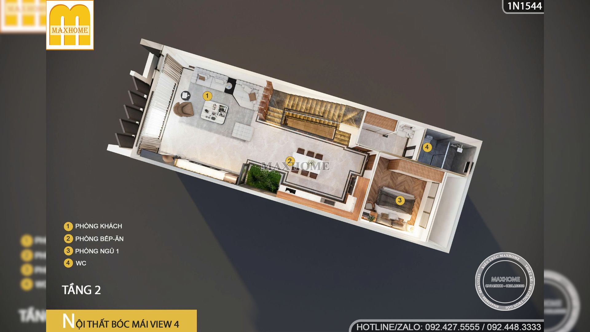 Từng tầng được liên kết bằng những đường thẳng mạnh mẽ nhưng không hề khô cứng, mảng xanh và vật liệu giả gỗ điểm xuyết giúp tổng thể trở nên thân thiện và ấm cúng. Maxhome đã tạo ra một thiết kế cân bằng giữa thẩm mỹ và công năng, phù hợp với nhu cầu của gia đình trẻ tại Đắk Lắk. Thiết kế do Maxhome thực hiện đã thể hiện đúng tinh thần của một gia đình muốn sở hữu không gian sống hiện đại, tiện nghi và có sự khác biệt so với các mẫu nhà phố quen thuộc.
