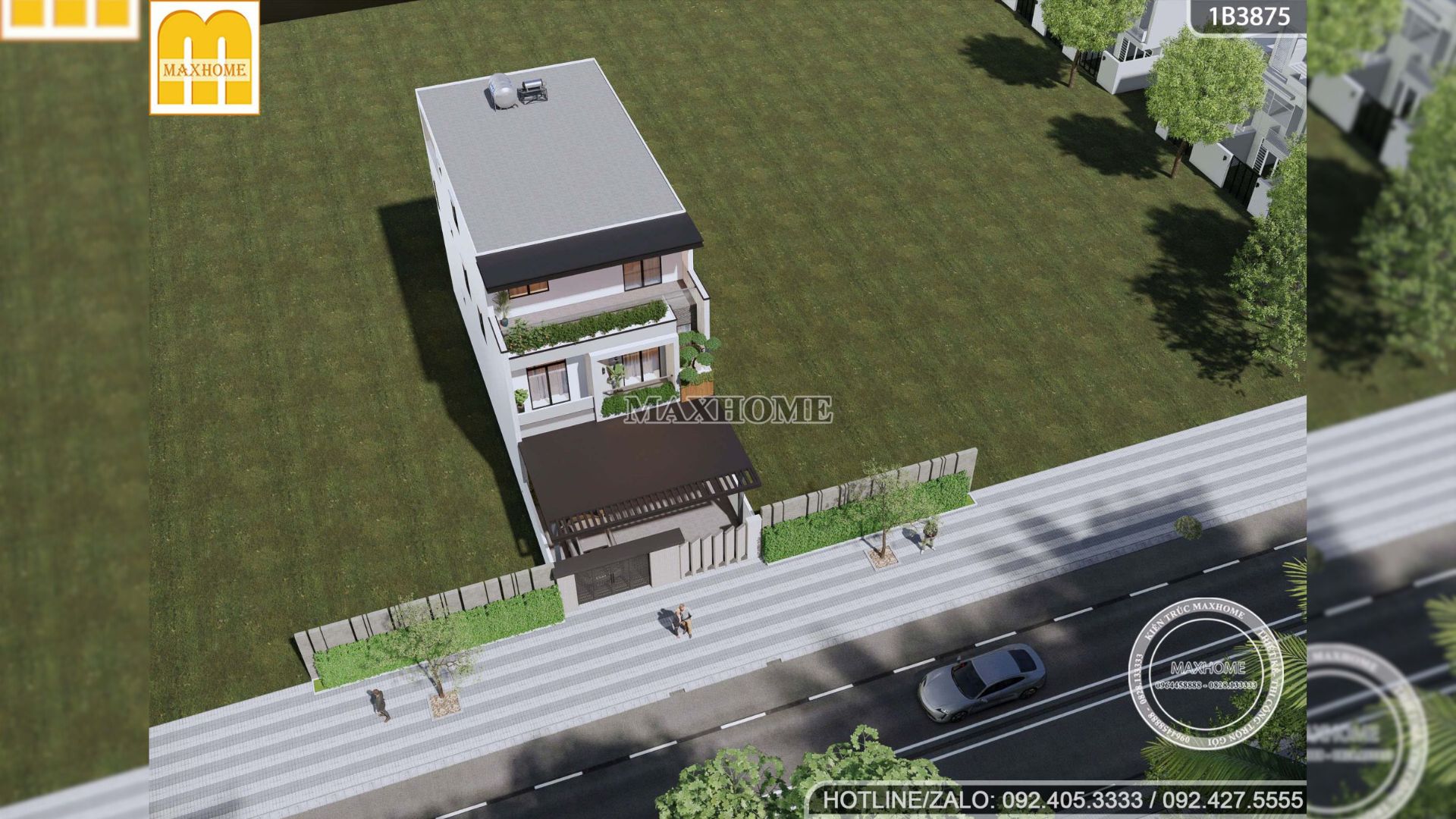 Thiết kế nhà 3 tầng mái bằng 6 phòng ngủ đẳng cấp cho gia đình lớn | MH05768